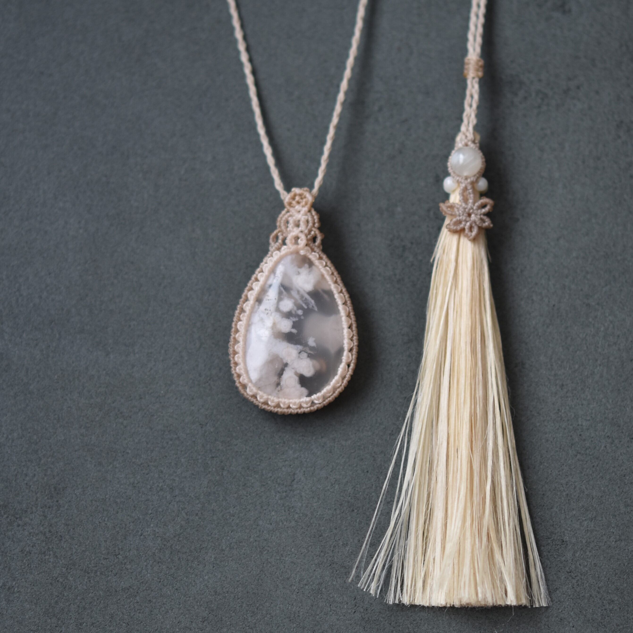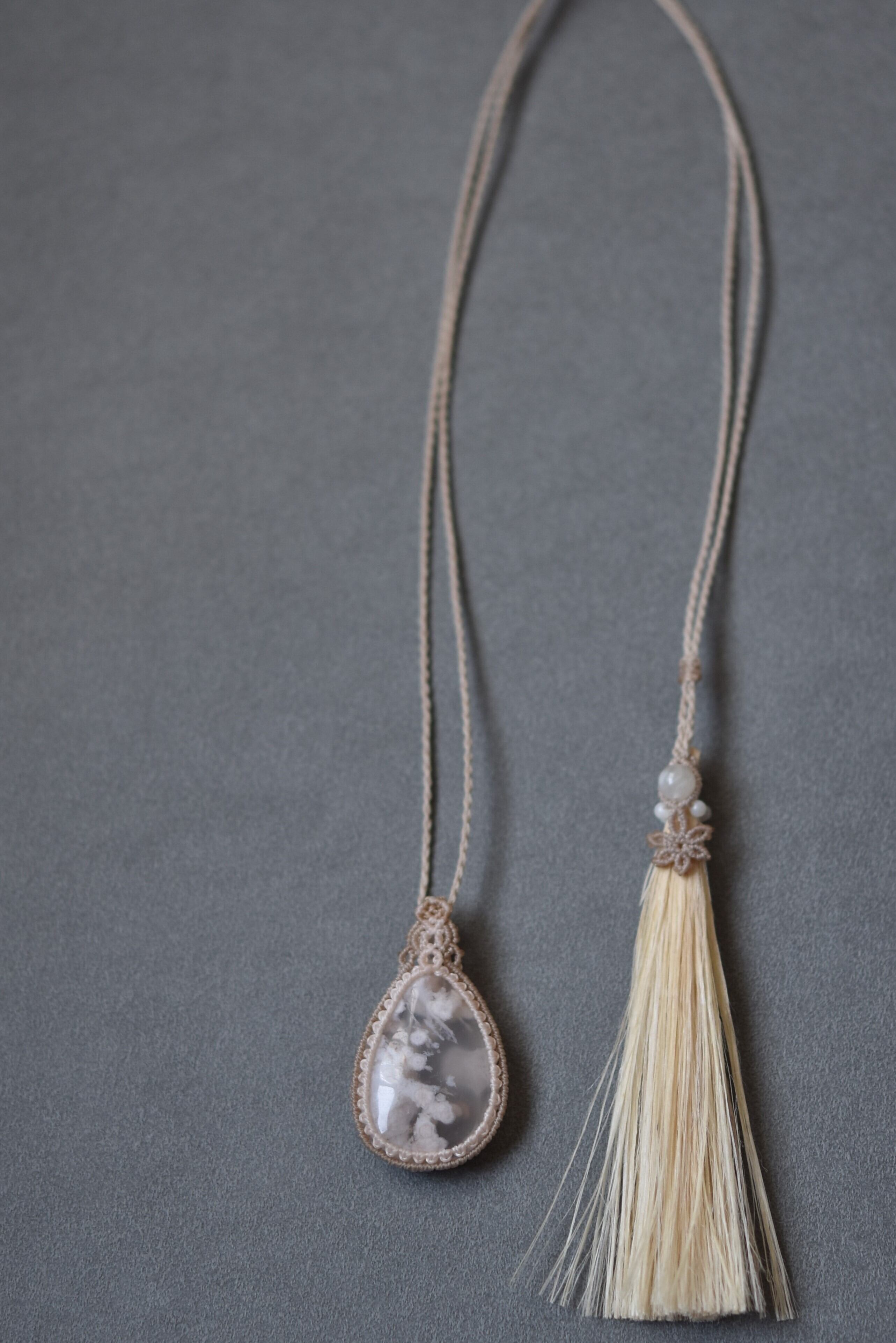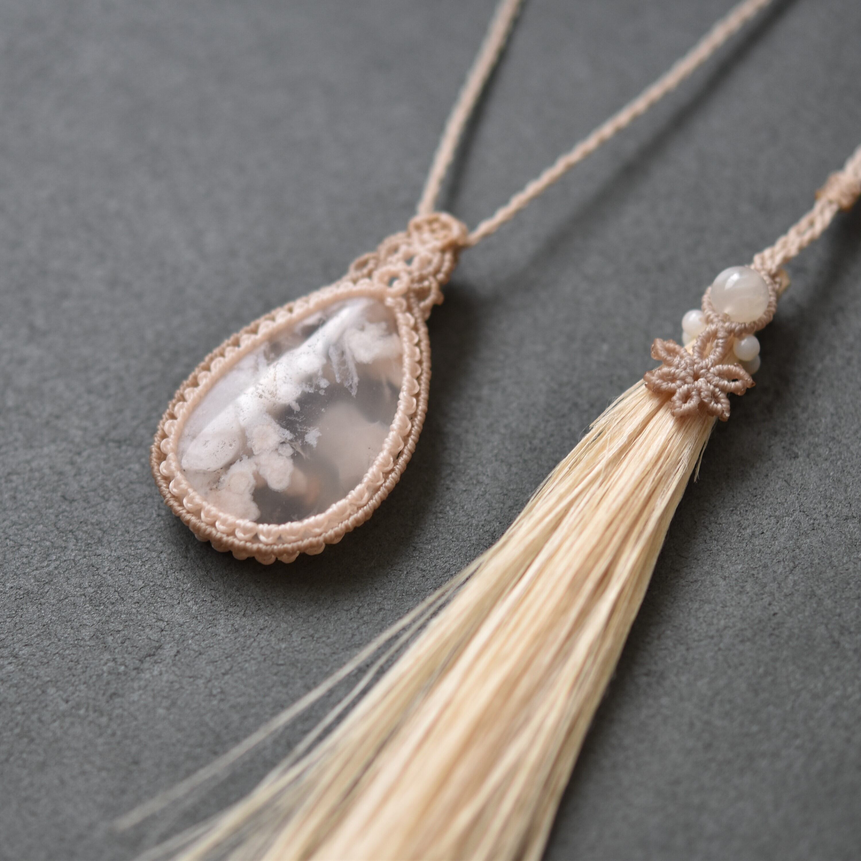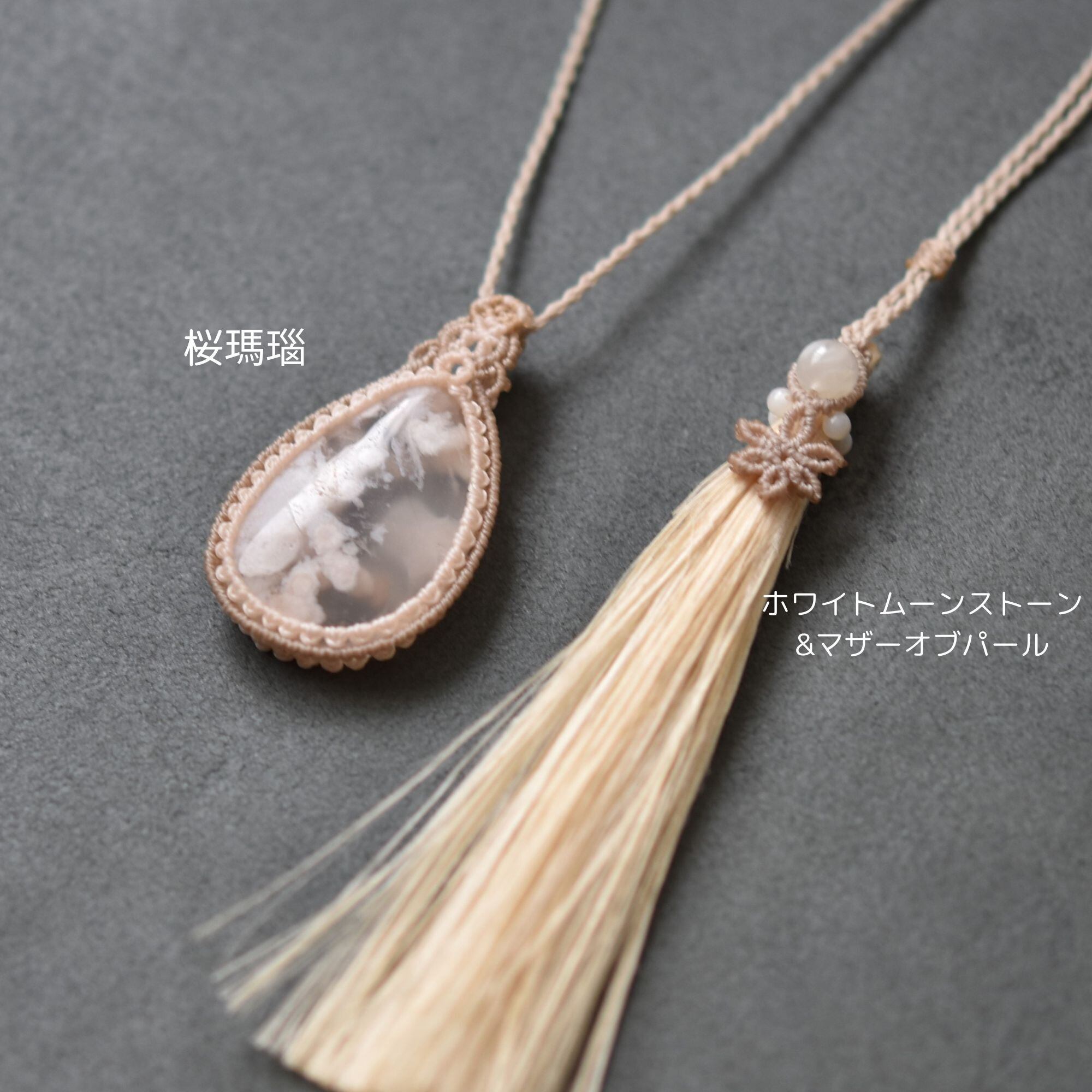 桜吹雪*精麻と桜瑪瑙のマクラメネックレス