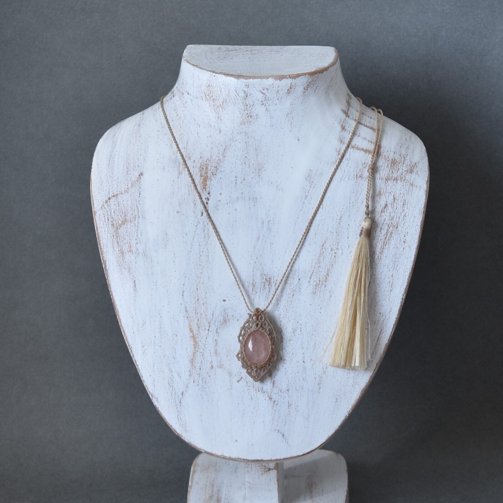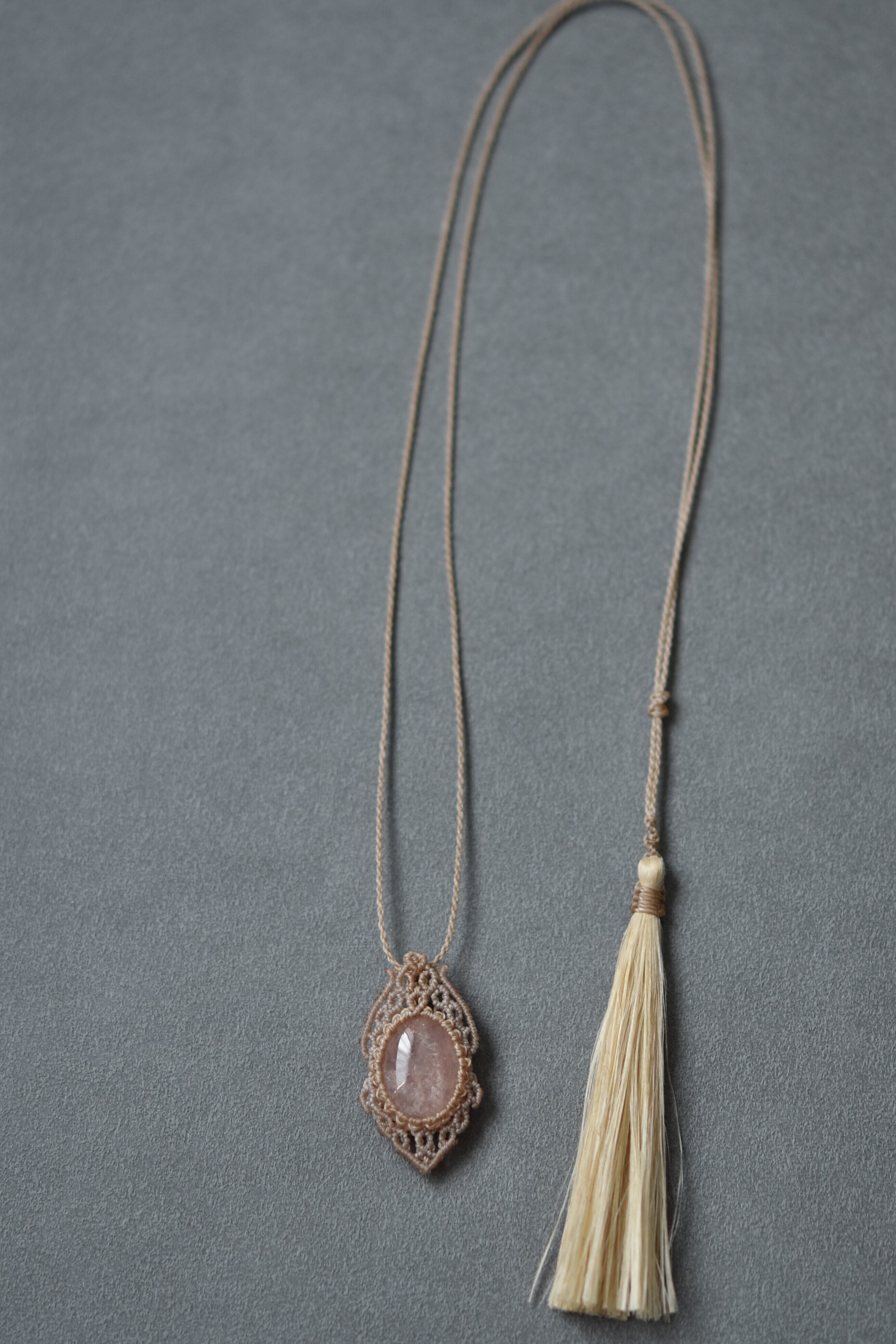 モルガナイトと栃木県産精麻のマクラメネックレス