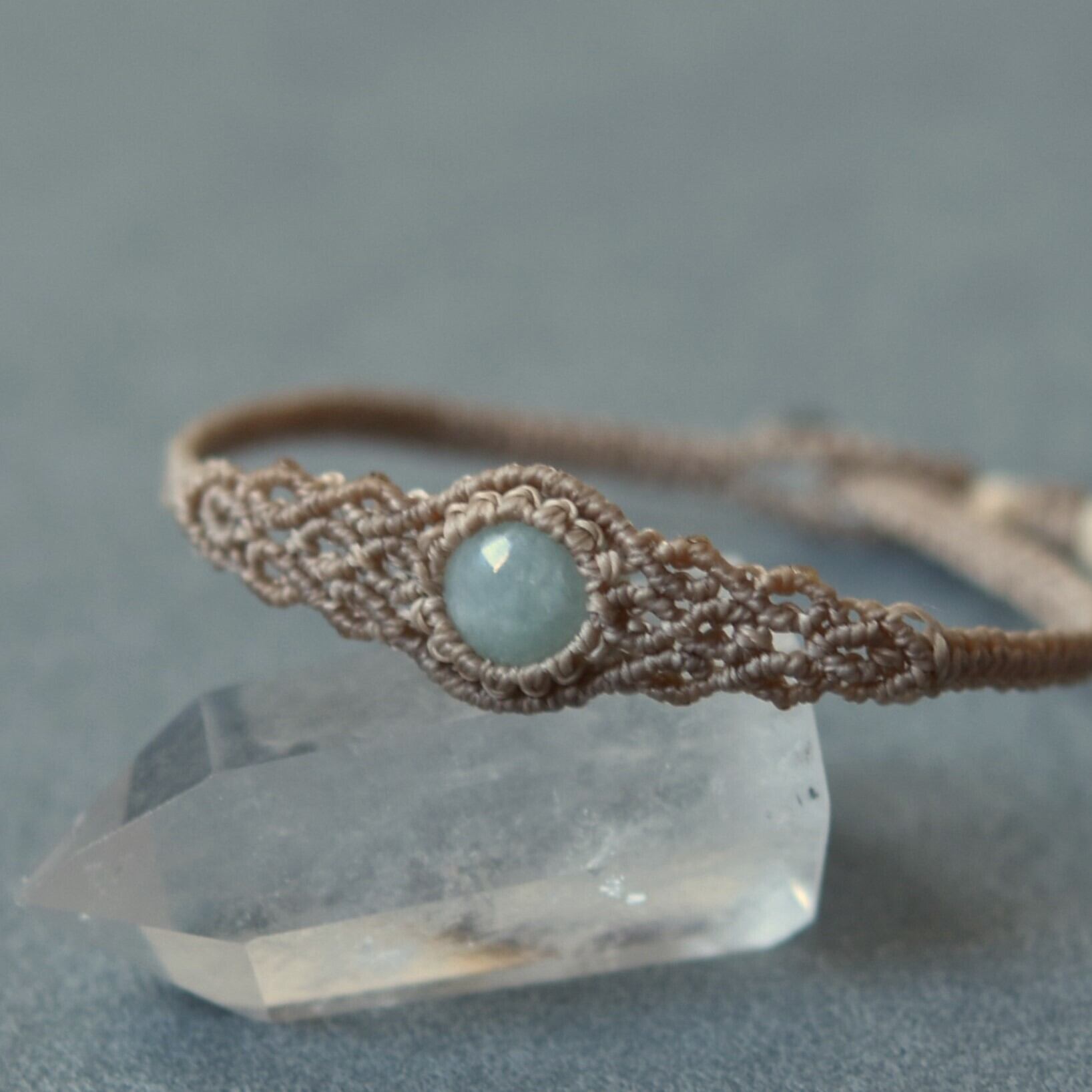 翡翠と栃木県産精麻のマクラメブレスレット【サイズ15.5cm】
