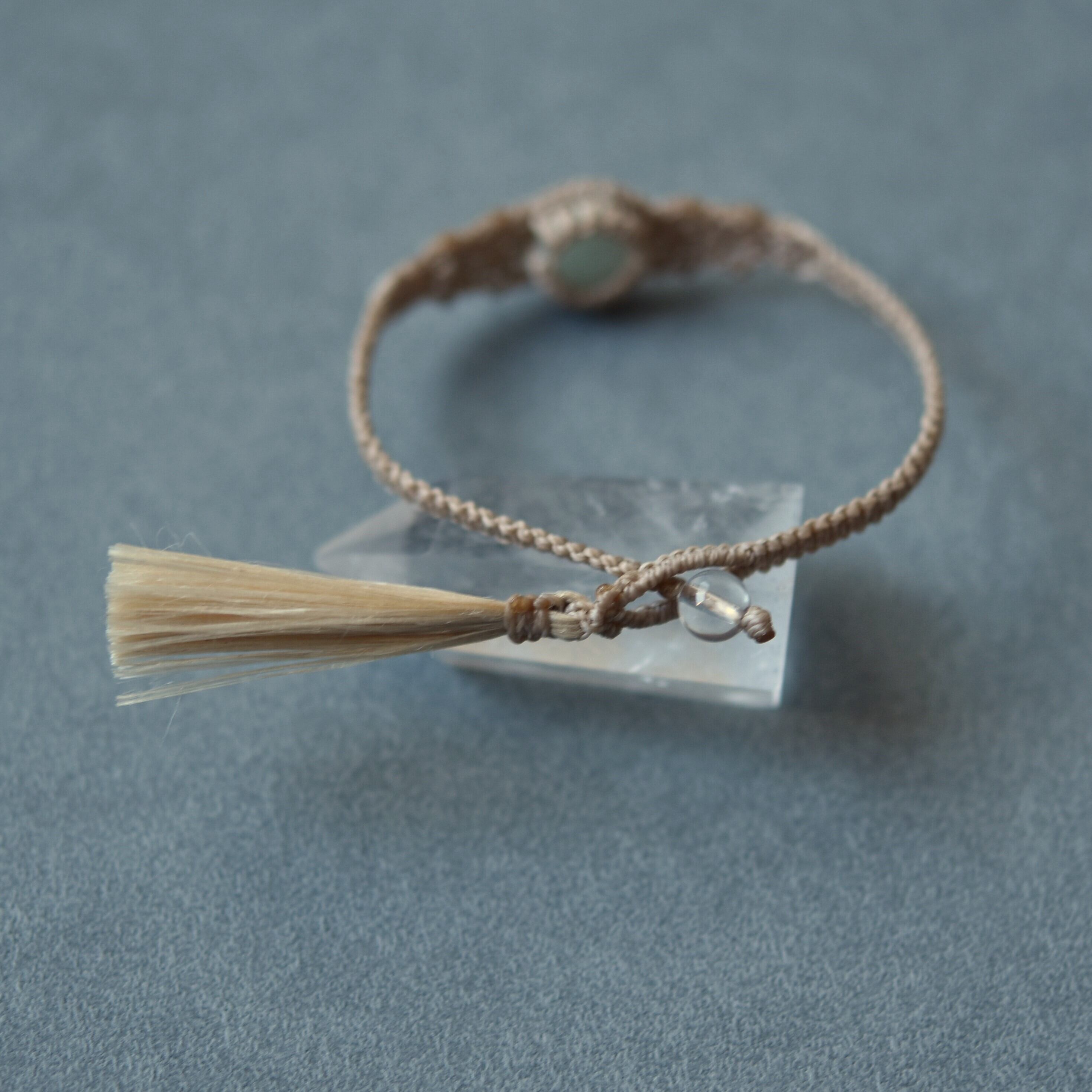 翡翠のマクラメブレスレットに精麻のタッセルをあしらいました。