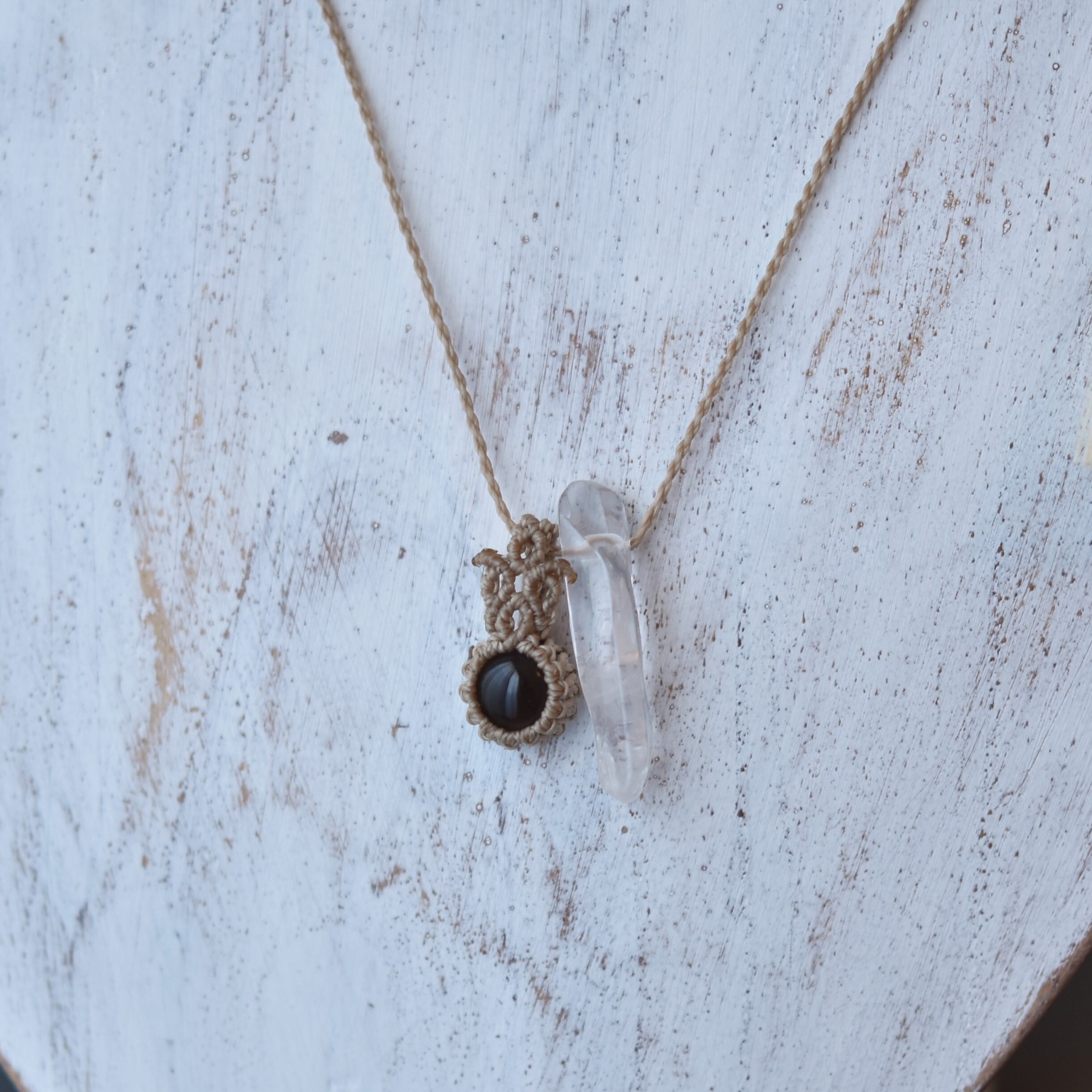 スモーキークォーツ&水晶│栃木県産精麻のマクラメネックレス