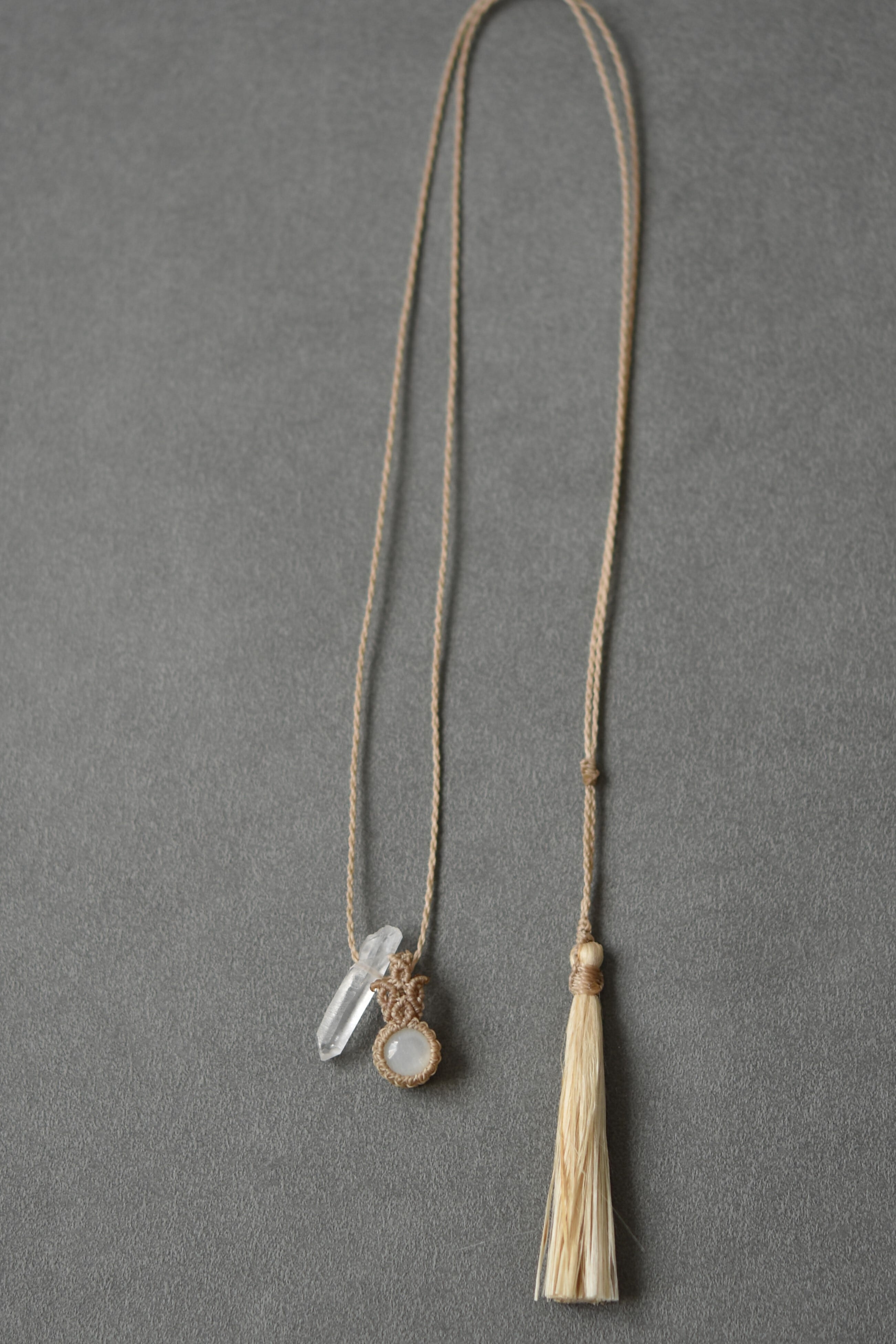 【6月誕生石】ホワイトムーンストーン&水晶│栃木県産精麻のマクラメネックレス