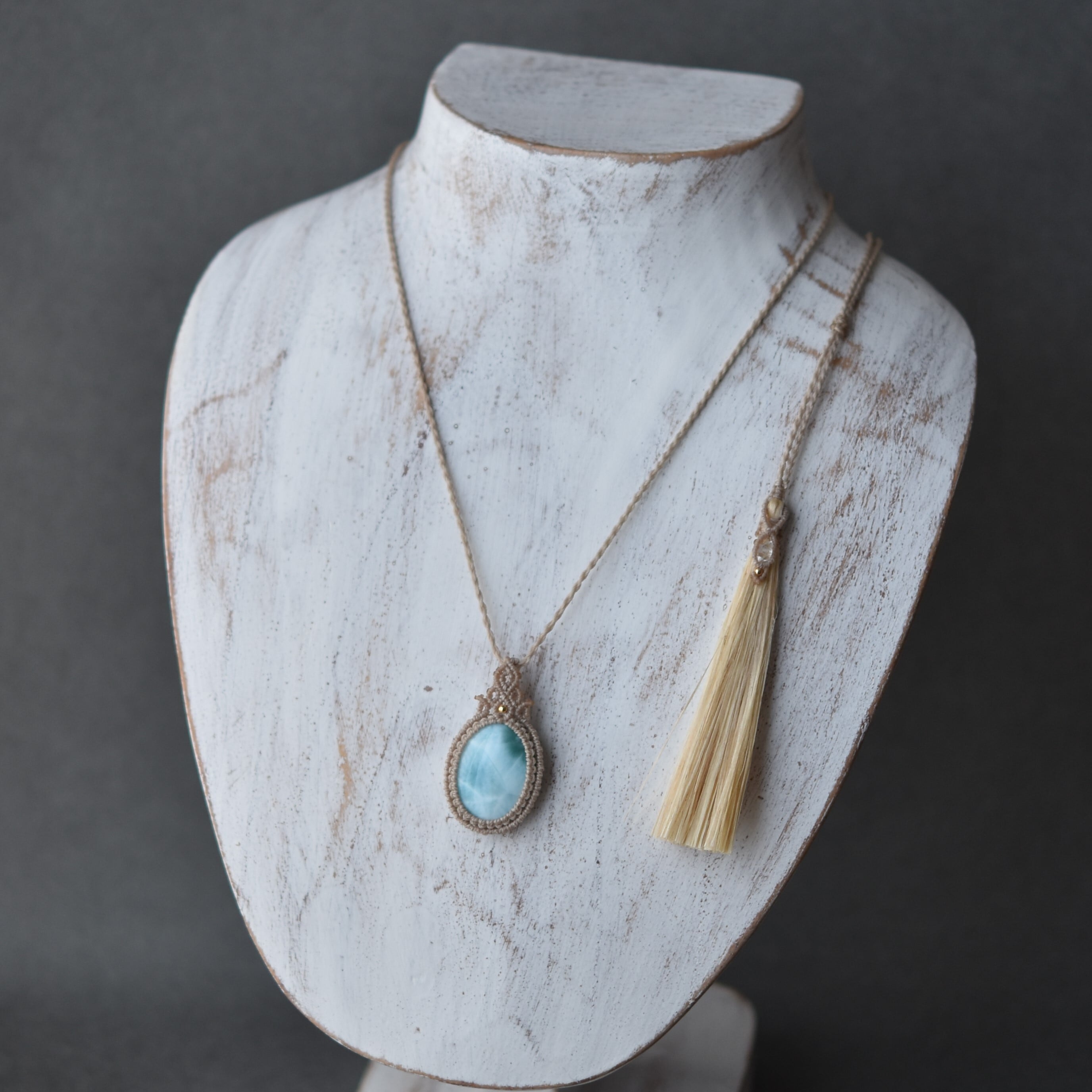 お麻もり*ラリマーと特等精麻のマクラメネックレス